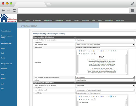 Recruiting is the secret of a successful brokerage. RIO Genesis has assembled an exclusive recruiting and retention system, included for free with RIO Office Suite. It will automate your agent recruiting and retention process: